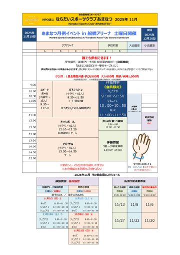 ※公民館「転倒予防教室」のスケジュールは船橋アリーナ月例イベントのスケジュールを参照してください