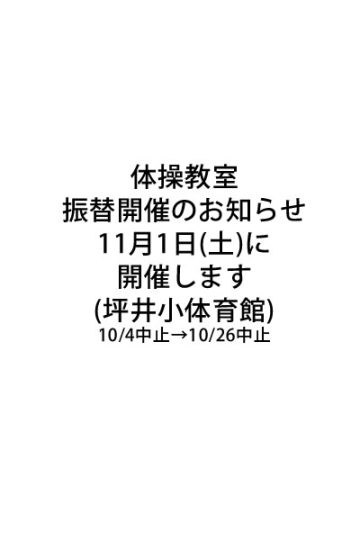 2025年10月4日の体操教室(坪井小体育館)は、11月1日に振り替え開催いたします。